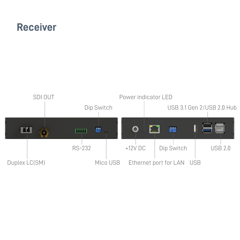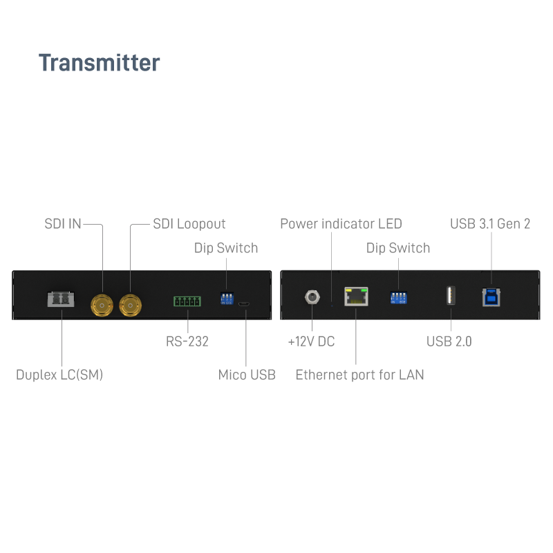 12G/6G/3G/HD-SDI over Fiber Extender with, RS-232, 1G Ethernet, USB 3.1 & KVM Support