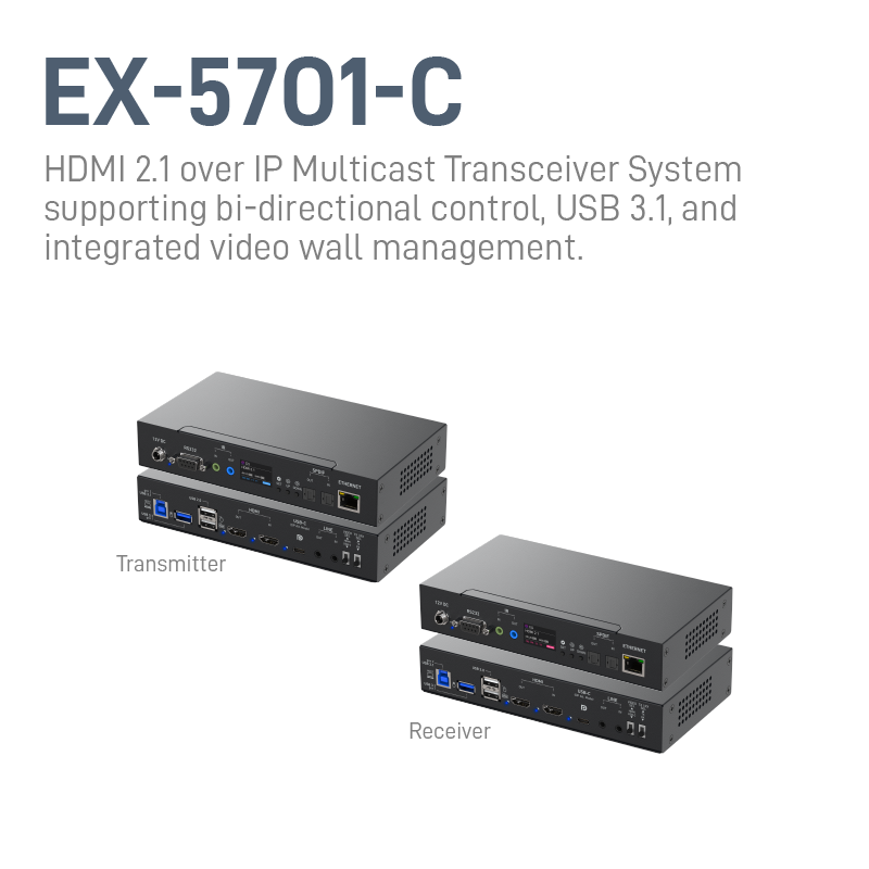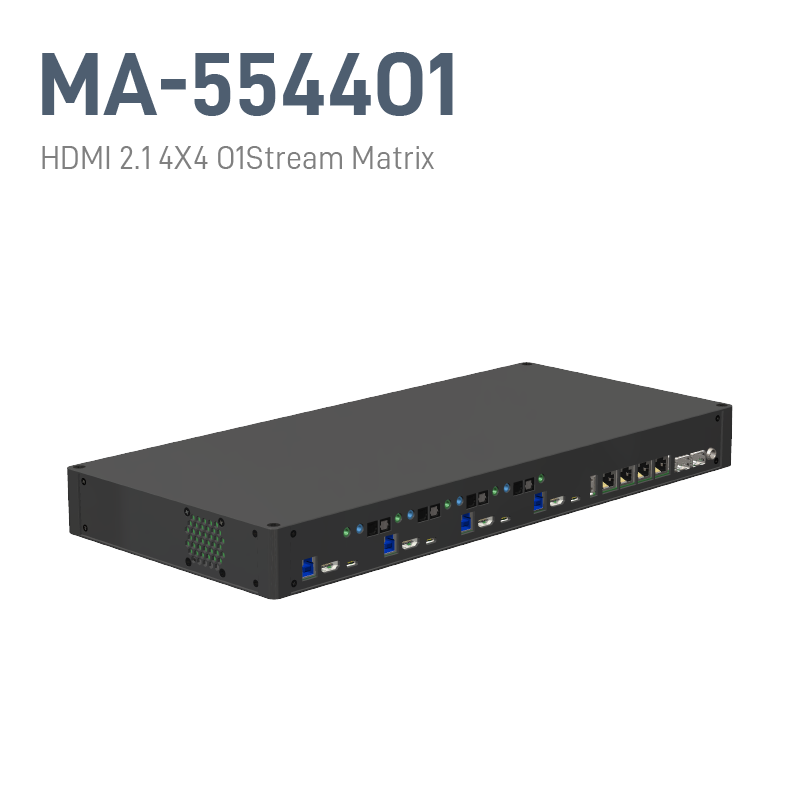 ALL PRODUCTS REFINE RESULTS REFINE RESULTS Home > Products > ※ O1stream ※ Displaying 15 Products EX-26O1 USB 3.2 Gen 1 over Fiber Extender FEATURES Extend HDMI signals follow SFP module(5km, 20km, or 50km) over single mode fiber optic cables Supports USB 1.0(low-speed), USB 1.1(full-speed), USB 2.0(high-speed) and USB 3.2 Gen 1(rate up to 5 Gbps) Supports four USB peripheral devices Built-in 10/100 Mbps Ethernet port with transparent pass-through mode (only supported in point-to-point connections between TX and RX) Supports hot plug function Does not require additional drivers Easy to setup EX-27O1 USB 3.2 Gen 1 over IP Multicast System FEATURES Extends the transmission over cat.5e cable up to 100m (330ft) from USB device Supports USB 1.0(low-speed), USB 1.1(full-speed), USB 2.0(high-speed) and USB 3.2 Gen 1(rate up to 5 Gbps) Supports four USB peripheral devices Built-in 10/100 Mbps Ethernet port with transparent pass-through mode (only supported in point-to-point connections between TX and RX) Supports hot plug function Does not require additional drivers Easy to setup EX-36O1 12G/6G/3G/HD-SDI over Fiber Extender with, RS-232, 1G Ethernet, USB 3.1 & KVM Support INPUTS ⎖ Transmitter 1x SDI-12G/6G/3G/HD 1x USB2.0-A (device) 1x USB3.1-B (host) 1x RS232 (terminal block) 1x micro USB-B (console ⎖ Receiver 1x Optical LC (SM) 1x LAN Port (to pc) 1x USB2.0-A (device) 2x USB2.0-A (keyboard/mouse) 1x USB2.0-A + 1xUSB3.1-A (device) 1x micro USB-B (console OUTPUTS ⎖ Transmitter 1x SDI-12G/6G/3G/HD (loopout) 1x LAN Port (to pc) 1x Optical LC (SM) ⎖ Receiver 1x SDI-12G/6G/3G/HD 1x RS232 (terminal block) EX-58O1-EU HDMI 2.1 over IP Multicast System with Bi-directional IR, RS-232 & USB 3.1 Support & LAN Pass-through EX-57O1-C HDMI 2.1 over IP Multicast Transceiver System with Bi-directional IR, RS-232, Audio Extender/Extractor, USB 3.1, KVM & Video Wall Support SOM-P6001 Multimedia-oriented Cortex A73-based System on Module MA-5544O1 HDMI 2.1 4X4 O1Stream Matrix INPUTS 4x HDMI 2.1 4x USB-C (DP Alt. Mode) 4x USB3.1-B gen2 (to PC) 4x IR Receiver (3.5mm jack) 4x S/PDIF (toslink)-IN 1x USB2.0-A (WebGUI) 1x 10G Optical LC (SFP) OUTPUTS 4x IR Receiver (3.5mm jack) 4x S/PDIF (toslink)-OUT 4x 1G Cat.x Port (RJ45) 1x 10G Optical LC (SFP) FEATURES HDMI 2.1 HDCP 2.3 Up to 48Gbps Bandwidth Throughput Up to Ultra-HD 4K@120 4:4:4 Supports Multi-Encode & Decode capability SP-5008O1 1X8 HDMI 2.1/DP 1.4 O1Stream Splitter over Single Cat.X with IR, RS-232, Audio, USB 3.1 & Loopout INPUTS 1x HDMI 2.1 1x USB-C (DP Alt. Mode) 1x USB3.1 gen1-A (device) 1x USB3.1-B (host) 1x RS232 (terminal block) 1x Stereo (3.5mm jack) 1x IR (3.5mm jack) 1x USB-C (UART-console) OUTPUTS 1x HDMI 2.1 1x Stereo (3.5mm jack) 1x IR (3.5mm jack) 8x 1G Cat.x Port (RJ45) 2x 10G Optical LC (SFP) FEATURES HDMI 2.1 HDCP 2.3 Up to 48Gbps Bandwidth Throughput Up to Ultra-HD 4K@120 4:4:4 Supports Multi-Encode & Decode capability ETH-01W O1stream WAN Emulator-Pro Edition INPUTS 1x 10/100 Mbps Port (RJ45-console) 1x USB-C (UART-console) 2x USB3.1 gen1-A (device) OUTPUTS 2x 1G Cat.x Port (RJ45-endpoint) FEATURES Transparent inline Layer-2 bridge between the two emulation ports, plus a dedicated management port with browser console. Independent per-direction controls: bandwidth shaping, one-way delay, jitter, random loss, and burst loss using the Gilbert-Elliott model. Real-time monitoring with live charts for throughput, latency, jitter, loss, and per-port status. Built-in templates for common conditions (LAN, Wi-Fi congestion, mobile, satellite, long-haul WAN), editable from the UI. Traffic filters by IP, port, and protocol to target specific flows. On-device packet capture start and stop from the UI. IPv4, IPv6, and VLAN pass-through with no addressing changes required on endpoints. Quiet desktop form factor with low power consumption. EX-56O1-3T1R HDMI 2.1 over Fiber Extender with Bi-directional IR, RS-232, 1G Ethernet, USB 3.1 & KVM Support INPUTS ⎖ Transmitter 1⨯ HDMI 2.1-IN 1⨯ USB-C (DP Alt. Mode) 1⨯ IR (3.5mm jack)-IN 1⨯ RS232 (DB9) 2⨯ USB2.0-A (device) 1⨯ USB3.1-B (device) 1⨯ USB3.1-B (host) ⎖ Receiver 1⨯ LAN Port 1⨯ Optical LC (SM) 1⨯ IR (3.5mm jack)-IN OUTPUTS ⎖ Transmitter 1⨯ LAN Port 1⨯ Optical LC (SM) 1⨯ IR (3.5mm jack)-OUT ⎖ Receiver 1⨯ HDMI 2.1-OUT 1⨯ IR (3.5mm jack)-OUT 1⨯ RS232 (DB9) 2⨯ USB2.0-A (keyboard/mouse) 2⨯ USB2.0-A (device) 1⨯ USB3.1-A (device) FEATURES Supports HDMI 2.1 & HDCP 2.3 Supports uncompressed resolution up to 4K@60 4:4:4 and visually lossless compression up to 4K144 4:4:4 DSC Extend signals over single-mode fiber for distances exceeding 2 km and up to 10 km Supports USB-C (Alt Mode DP 1.4) and simultaneous HDMI/DisplayPort input Supports VRR(Variable Refresh Rate) & ALLM(Auto Low Latency Mode) Extend HDMI signals up to 10km (6.25miles) over single mode fiber optic cables HDCP, EDID & CEC Bypass Pure unaltered uncompressed 7.1ch digital HDMI over fiber transmission Bypasses eARC, line audio, MIC, HPOUT, SPDI/F, DTS-HD Master audio, and Dolby TrueHD Supports bi-directional full frequency IR signal from 20KHz to 60KHz Full duplex RS-232 control up to 115,200 bps Supports USB 3.1 Gen1 host mode for UVC webcam and USB 3.1 Gen2 UVC device mode Supports KVM function Integrated 1G Ethernet for seamless AV and data transmission EX-57O1 HDMI 2.1 over IP Multicast Transceiver System with Bi-directional IR, RS-232, Audio Extender/Extractor, USB 3.1, KVM & Video Wall Support INPUTS ⎖ Transceiver 1⨯ HDMI 2.1-IN 1⨯ Stereo (3.5mm jack)-IN 1⨯ S/PDIF (toslink)-IN 1⨯ USB-C (PD 3.0) 1⨯ IR (3.5mm jack)-IN 3⨯ USB2.0-A (keyboard/mouse) 1⨯ USB3.1-A gen1 (device) 1⨯ USB3.1-B (console) 1⨯ RS232 (DB9) OUTPUTS ⎖ Transceiver 1⨯ HDMI 2.1-OUT 1⨯ USB-C (DP Alt. Mode) 1⨯ Stereo (3.5mm jack)-OUT 1⨯ S/PDIF (toslink)-OUT 1⨯ IR (3.5mm jack)-OUT FEATURES Supports HDMI 2.1 & HDCP 2.3 Supports resolution up to 4K@144 4:4:4/ 8K@60 4:2:2 DSC Supports USB-C (Alt Mode DP 1.4)